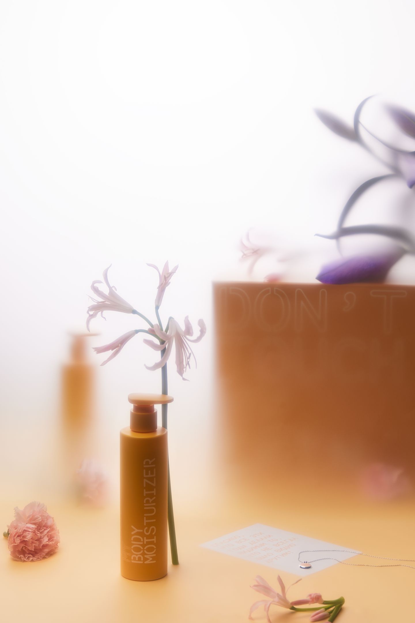 К пятилетнему юбилею марка косметики Don`t Touch My Skin совместно с креативным агентством Journey выпустили подарочный набор с двумя продуктами для тела и секретным кулоном. А мы показали это красиво и в стилистике марки, подчеркнув нежность, телесность, чувственность и любовь к себе. Задачей со звёздочкой было пожелание клиента показать "волшебство" кулона - если на него попадает яркий луч света, то он отражением отбрасывает на ближайшую поверхность надпись "DON`T TOUCH MY"