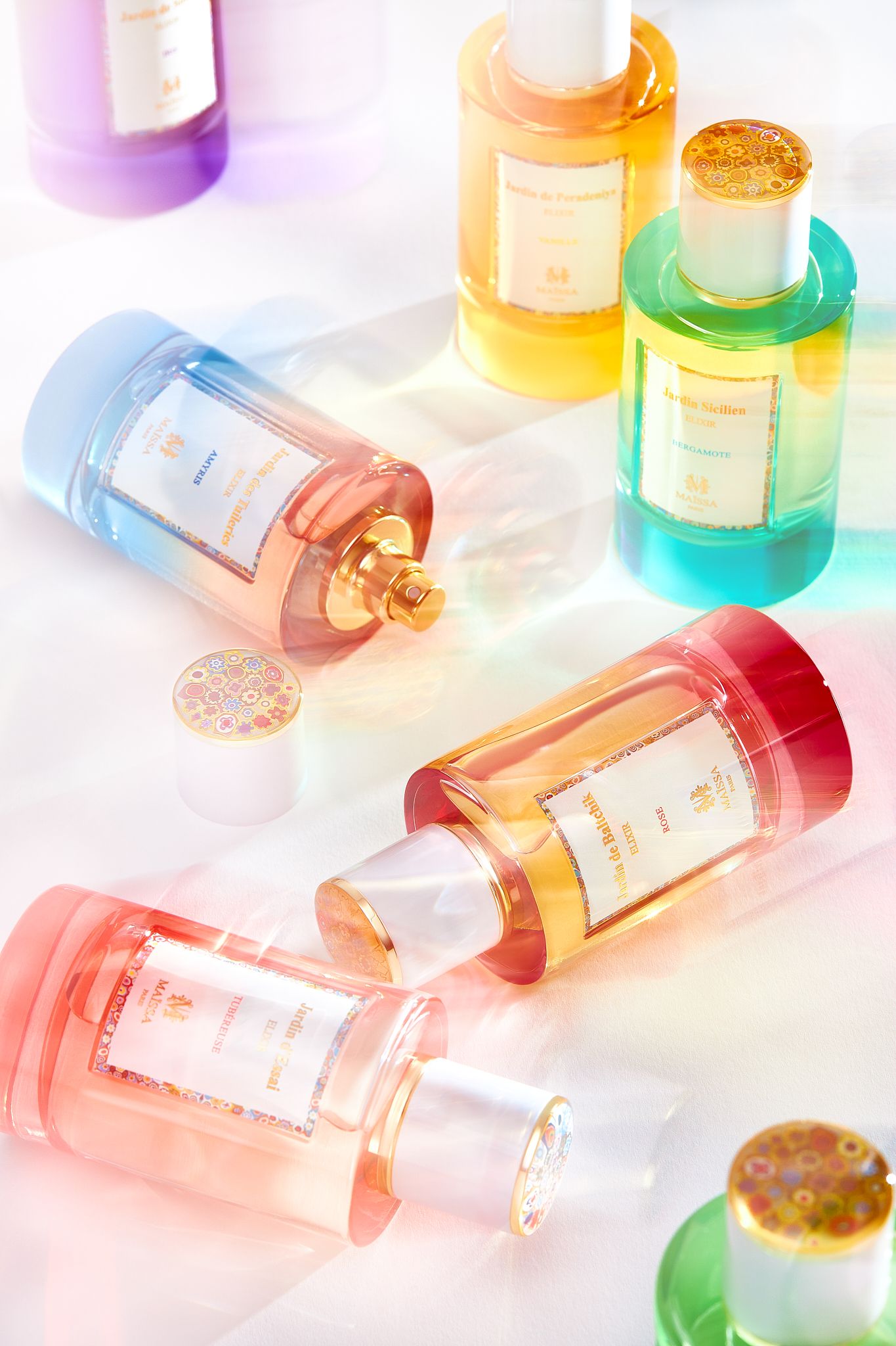 Maison Maissa - французский парфюмерный дом, который в 2024 году появился в России, выбрав точки дистрибуции сеть магазинов РИВ ГОШ и ЦУМ. Специально к запуску мы делали съёмку имиджевых фотографий, которые легли в основу рекламных публикаций в журналах и интернете. Каждый кадр был посвящен своей линейке и сет-дизайном отсылает к основной её идее: акварельную коллекцию Jardin мы преподнесли через полупрозрачность линий и смазанность, восточную Signature d`orient в объемных и драматичных складках золотого листа, отсылающего к роскоши и богатству, а классическую Edition Blanche сняли в окружении белых колонн и фокуса на одном из аромат, остальные же ушли в размытие. Отдельно стоит написать про L'amour Eternel, который мы дополняли искусственным интеллектом и создали сзади фон из парижского сада, который был в ТЗ (а всю композицию на переднем плане создавали в студии).